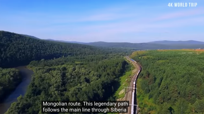 Below is a picture of the rail route crossing Siberia and entering into the north of China